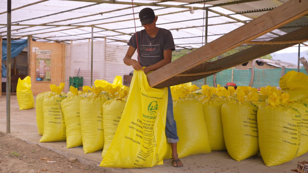 In terms of cacao, Norandino receive a total of 2K tons every year. Most of it is exported to Amsterdam and Europe. The furthest the yellow bags travel is Japan.