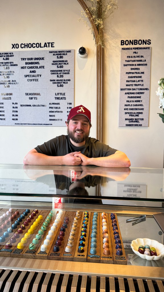 In March, we picked up on our own chocolate investigation in London visiting makers, melters and bonbon creators. One of them was Robert from XO Chocolate. Funnily enough we took photos of him on the AoC awards night without any one of us realising until we met him again at the store!