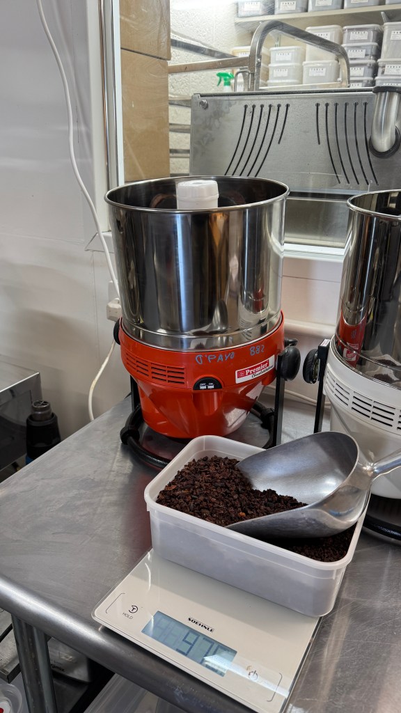 When entering the space you are welcomed by a 50Kg Melangeur and a clean space with not a cocoa nib out of place.